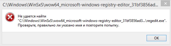 Здравствуйте. При попытке запустить regedit.exe через панель управления "Пуск" выдает вот такую ошибку. Эта же ошибка появляется и при попытке запуска других программ. Заранее спасибо.