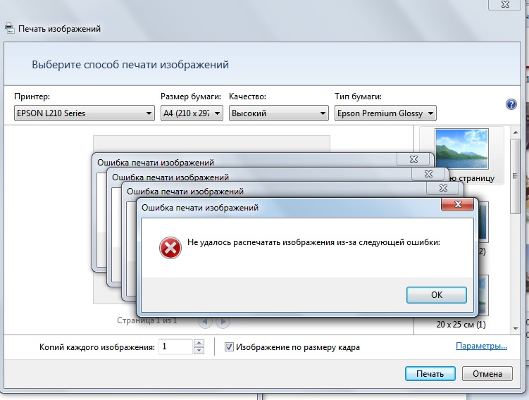 Здравствуйте.ноут packard bell вывожу изображение на печать выдает ошибку на экране ,что на печать идёт на показывает изображение.пишет "не удалось распечатать изображение из за следующей ошибки" и на этом все.что я с ноута удалила не то и как это вернуть?