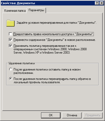 Не удалось применить политику и перенаправить папку "Music" в "\\server01\UserDoc$\%USERNAME%\Мои документы\Моя музыка".