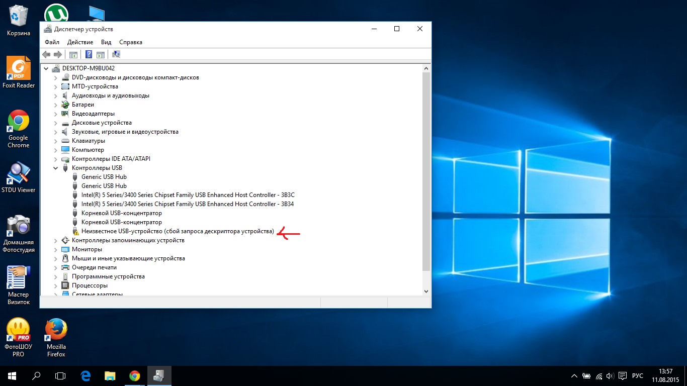 Здравствуйте , после установки windows 10 , у меня перестала работать мышка , ну там втыкаешь , горит свет и потом опять выключается , и выдает вот такое сообщение - "USB- устройство не опознано ".Ну естественно я решил покопаться в "диспетчер устройств" , там пишет "сбой запроса дескриптора устройства " , потом я решил поискать в DPS - драйвера , там было написано USB\DEVICE_DESCRIPTOR_FAILURE - требует установки , конечно я обрадовался , но этого драйвера там - нет.