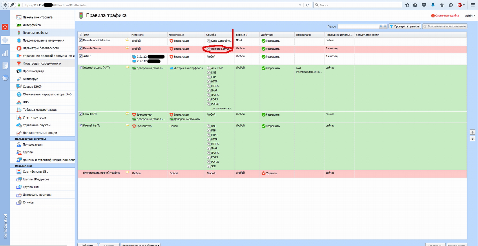 Профиль | Отправить PM | Цитировать destroyera, в web-интерфес самого Kerio зайти можете через этот IP?