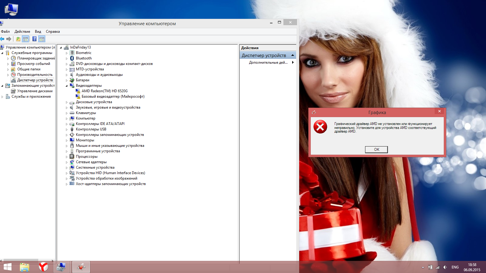 Добрый день, встретился с очень проблемной ситуацией, прошу помощи, облазил много форумов, подобной статьи не нашел. В общем ситуация такая, ноутбук HP PAVILION DV7 6b02er, на днях чистил и менял термопасту (не впервой), поработал нормально полтора дня, без проблем все нормально, стояла ОС WINDOWS 10, отошел в магазин, прихожу ноут в спящем режиме, выхожу из спящего режима, поменялось разрешение экрана, и пишет что драйвер АМД не правильно функционирует, я перезапустил комп, все нормально стало, буквально поработал часа 2, перезапускаю ноут опять та же лажа, и уже ни в какую, видео карта сгенерирована с процесором AMD HD 6520G, удалял полностью драйвера и ставил свежие, не помагает после перезагрузки все то же самое, думал проблема в ОС, но не тут то было, поменял на 8.1, ставлю драйвера с ОФ сайта HP то же самое, потом поставил с ОФ сайта AMD, все по прежнему так же, помогите, не знаю в чем проблема. Скрин прилагается.