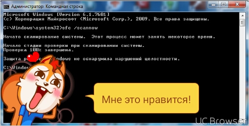 1. Откройте командную строку с Административными правами. Для этого нажмите кнопку Пуск > выберите Все программы > Стандартные > щелкните правой кнопкой мыши командную строку и выберите команду Запуск от имени администратора. 2. В командной строке введите следующую команду и нажмите клавишу ВВОД: Если в конце проверки выйдет сообщение, что не все файлы удалось восстановить, выложите C:\windows\Logs\CBS\CBS.log в архиве. Если файлы будут восстановлены, перезагрузитесь и проверьте наличие проблемы. |