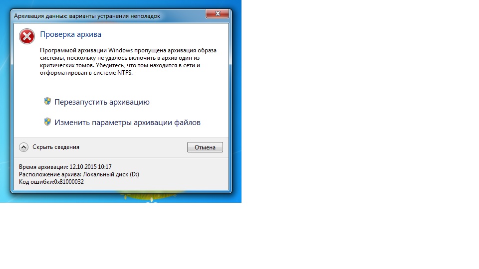 Системный раздел и раздел windows созданы в разных файловых системах (FAT32 и NTFS соответственно). Может ли это влиять на то, что windows отказывается делать архивацию данных? |