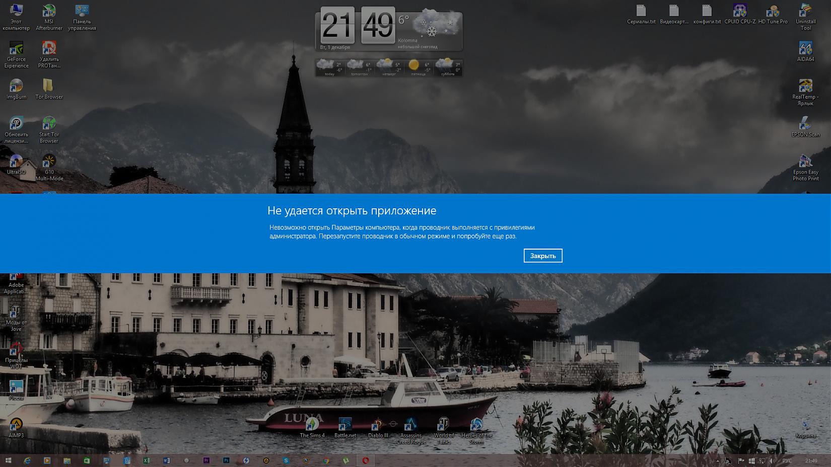 :Невозможно открыть параметры компьютера пока проводник работает с привилегиями администратора. Перезапустите проводник в обычном режиме. гуглил, но толкового ничего не нашел, перезапуск рабочего стола пробовал делать, параметры компьютера работают! когда точно началось сказать не могу, соответственно не знаю какие обновления и за какой месяц нужно трогать! да кстати, все метро приложения работают, ни одно из них никогда не вылетало! и так же работает магазин! |