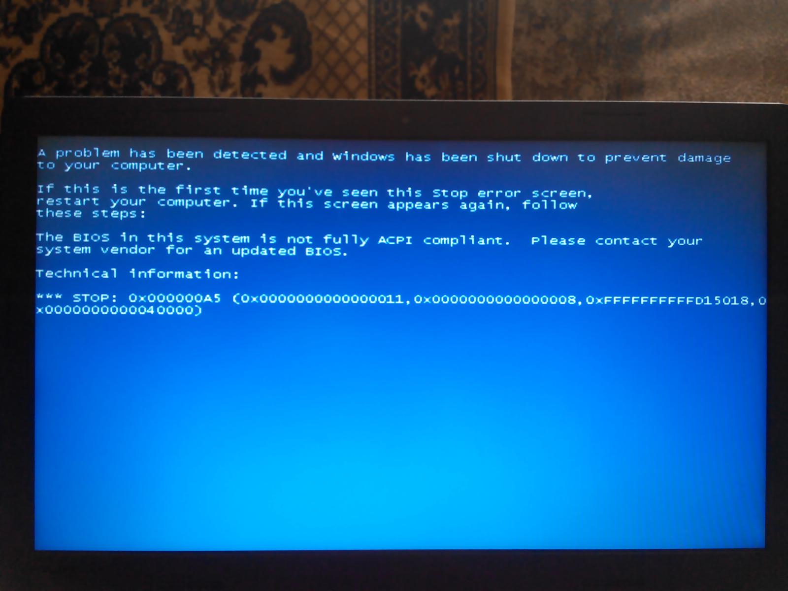Здравствуйте! Не удается переустановить ОС Win7, с покупки стоит Win10. При загрузке установки винды с флешки, вылетает синий экран с кодом ошибки "STOP 0X000000A5...."