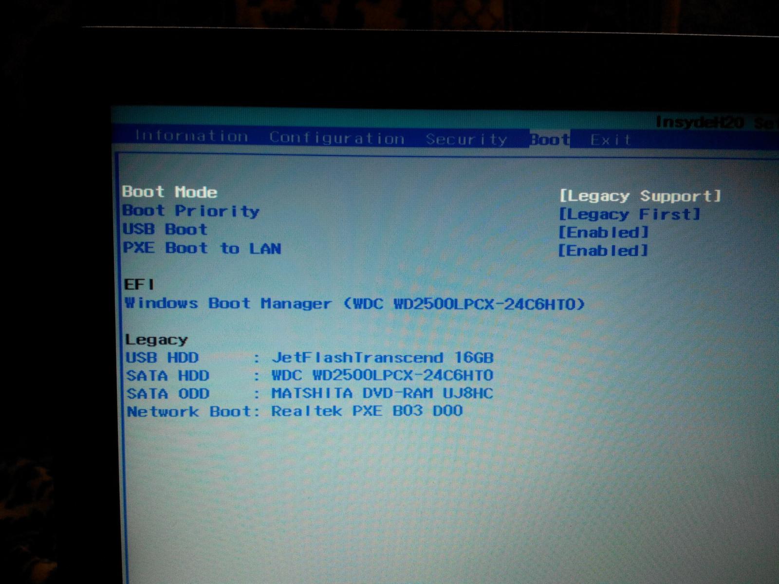 Много просмотрел сайтов с мануалами по установке винды на ноутах Lenovo, но у меня по всей видимости другая версия биоса, и некоторые вкладки другие, вернее их содержимое. Настройки все выставленны правильно, менял много раз, но итог один и тот же. Грешил на флешку, но и с DVD диска не грузится, выскакивает синий экран. Помогите, плз! |