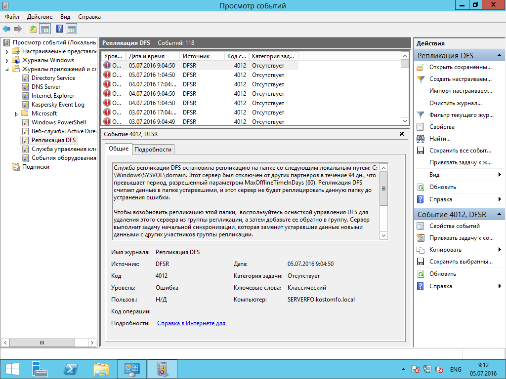 2012 R2 - Ошибка DFS репликации