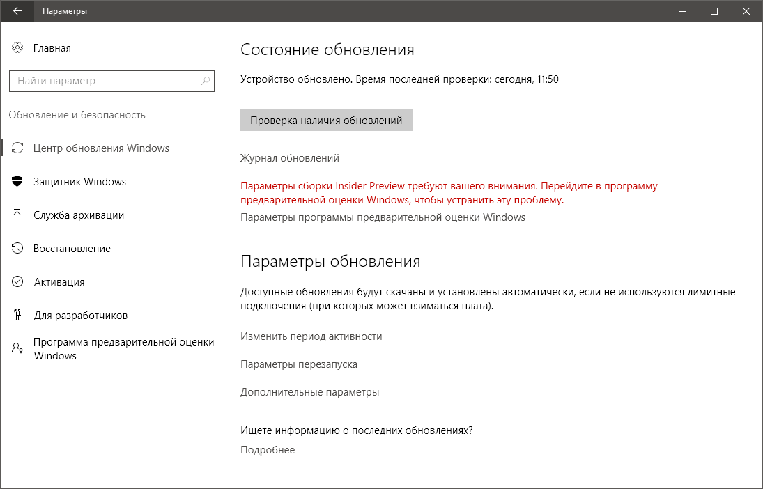 Трудно что-либо сказать, поскольку у Вас одна из последних сборок. У меня до сих пор 1511. Но Вы можете попробовать удалить последнюю установленную сборку в Центре обновления. У Вас все несколько по другому, не могу точно сказать где. Поищите. |