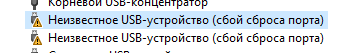 Вчера загрузилось "Windows 10 Anniversary Update"(Обновление функций до Windows 10, версия 1607). И теперь на ноутбуке из четырех USB портов работает только один. В диспетчере устройств стало то что на скрине ("сбой сброса порта"), "обновить драйвер" не помогает. При этом в порты ничего не подключено, только мышь в единственный работающий.