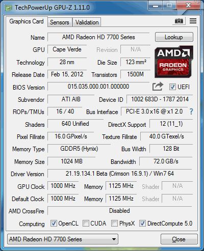 Видеокарта his hd7770 работает в режиме PCI-E x1