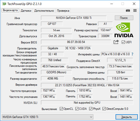 Компьютерный форум OSzone.net » Железо » Разгон, охлаждение и моддинг » Gigabyte 1050 Ti gaming + зависания.