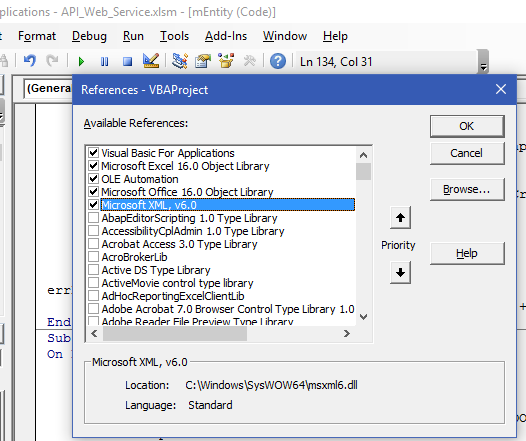 Error 'Compile Error: User-defined type not defined' (см первый скрин) и подсвечивает Dim XMLHttp As New MSXML2.XMLHttp меняю вышеуказанную строку на Dim XMLHttp As Object Set XMLHttp = CreateObject("MSXML2.XMLHttp") то уже ругается на следующую строку (см второй скрин) ну и т.д. Я так понимаю что некие методы в офисе 2016 то ли устарели, то ли отключены (по разным причинам) и поэтому мне придется адаптировать код под новые библиотеки. Но мне проще подцепить старую бибилиотеку и работать с ней, но в 16-м офисе. (ну или если есть автокомпилятор, то готов засунуть код туда) |