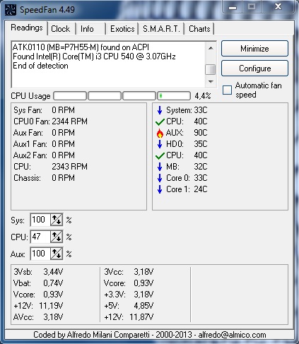 Месяц назад заменил кулер который охлаждает процессор, так же заменил термопасту, батарейку и поставил новую оперативную память. Весь месяц все работало идеально, лишь шумел БП (он старый). Но с недавнего времени компьютер стал зависать через 5 минут после запуска какой-нибудь игры. При этом зависание сопровождается чуть слышным писком из системника, звук напоминающий запуск компьютера. Зависание длится по 5-6 минут потом отвисает на пару минут и снова зависает. Этого времени хватает чтобы открыть диспетчер задач и оффнуть игру. Помогает лишь полное отключение всех кабелей питания от сети, в том числе и бесперебойника. После ожидания 15-20 минут подключив кабели питания к компьютер можно включить и играть, при этом никакого звука и ничто не зависает. Каждое последующее включение компьютера в течении суток не влияет на работу (можно выключить комп и через часа два-три включить и снова можно играть). И лишь проснувшись утром необходимо включить комп, зайти в игру, далее зависнуть потом выключить отсоединить все и подождать, а потом включить и все ок. Иногда при включении windows начинает восстанавливать свои файлы, такое чувство будто компьютер всегда принудительно вырубают, а не дают завершить работу до конца. Пожалуйста помогите определить проблему. Боюсь что неисправна материнка или может жесткий диск. Так как если бы причина была бы в БП, то почему windows файлы повреждены? П.С. кулер заменил на идентичный. На скриншоте температурные данные без нагрузки. Нагружая систему температура вырастает максимум на 10-15 градусов. Сборка: Материнская плата: ASUS P7H55-M Процессор: Intel(R) Core(TM) i3 CPU ОС: Windows 7 x64 Оперативная память: AMD Radeon R3 Value Series 4Gb 1333Hz Видеокарта: Встроенная Аудиокарта: Встроенная Кулер: Deep Cool Alta 9 65W |