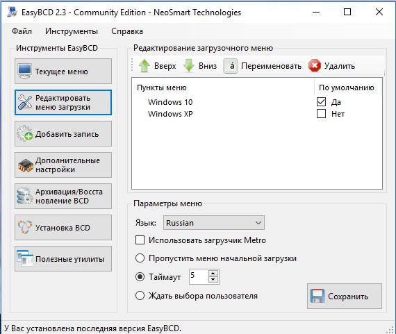 Уважаемые академики компьютерных наук! Помогите мне расшифровать интересно явление. Сам я причинно-следственной связи не обнаружил. Короче, в моем компьютере – 2 Системы: Windows XP и Windows 10. Работают через загрузчик EasyBCD 2.3. В нем я выставил «время ожидания – 5 секунд то есть если за это время не выбрана Система для загрузки, то по умолчанию загружается такая-то… Так вот у меня почему-то сей процесс ОСТАНАВЛИВАЕТСЯ (т. е. замирает) на стадии выбора. И пока я ПРИНУДИТЕЛЬНО не выберу Систему для загрузки – все стоИт на месте… В чем тут может быть дело? Кто-нибудь с таким эффектом сталкивался? Я уже и EasyBCD 2.3 пробовал переинсталлировать… ничего не вышло… Помогите, пожалуйста, ибо, хоть это не «смертельно», но прилично раздражает… С уважением, Валерий Марченко (полу «чайник») |