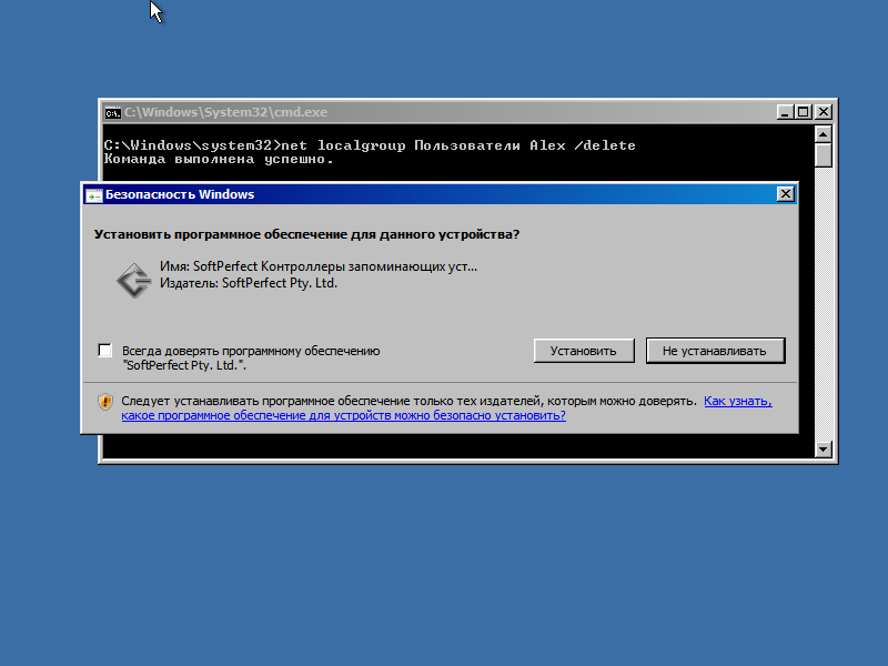 Всем привет, при автоматической установке Windows 7 x64 Ultimate с автовход в систему, происходит установка различных небольших программ, все устанавливаются отлично, но вот с одной получается засада: при ее тихой установке выходит окно "Безопасность Windows", в котором задается вопрос: "Установить программное обеспечение для данного устройства? " и пока вручную не подтвердишь- установка останавливается. Как можно отключить это окно?