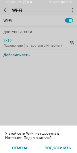 Switch Virtual Router - результат пока прежний - Подключено (нет доступа в Интернет). |