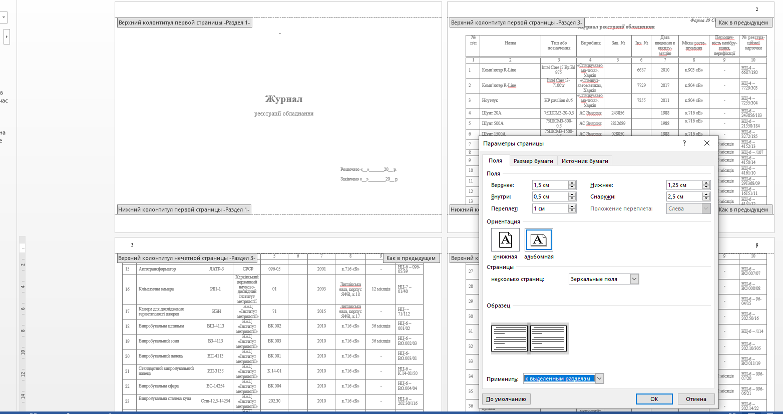 2. меня "зеркальные поля" попутали с номерами страниц и с правой стороной переплета на второй странице (а нужно слевой). пришлось выставить наоборот внутри меньше поля чем снаружи |