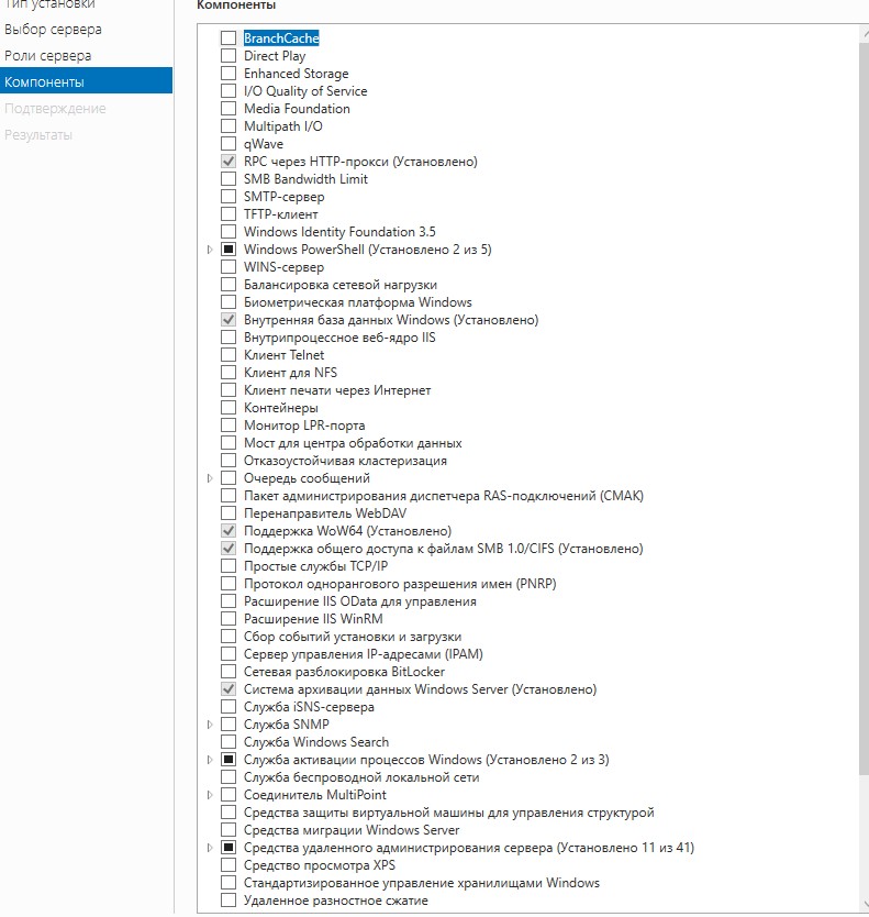 на скрине все что есть для установки компонент, то что в низу скрина "поддержка общего доступа к файлам SMB 1.0" это оно и есть? |