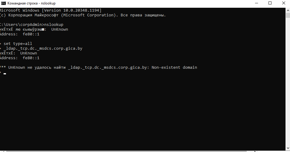 Так как без включения после ввода в домен нет и нтернета. Какой DNS-сервер указан у Вас в настройках активного сетевого адаптера? На сервере следующие настройки 192.168.10.17 255.255.255.0 192.168.10.1 192.168.10.17 Рабочие компьютеры соответственно 192.168.10.100 255.255.255.0 192.168.10.1 192.168.10.17 Он рабочий, на запросы отвечает? Пинговал с рабочего ПК 192.168.10.17 все хорошо пинг есть Кто является администратором домена gica.by? Я, а учетная запись corpadmin На IP-адресе 192.168.10.17, DNS-сервер какого домена находится? На сервере следующие настройки 192.168.10.17 255.255.255.0 192.168.10.1 192.168.10.17 |