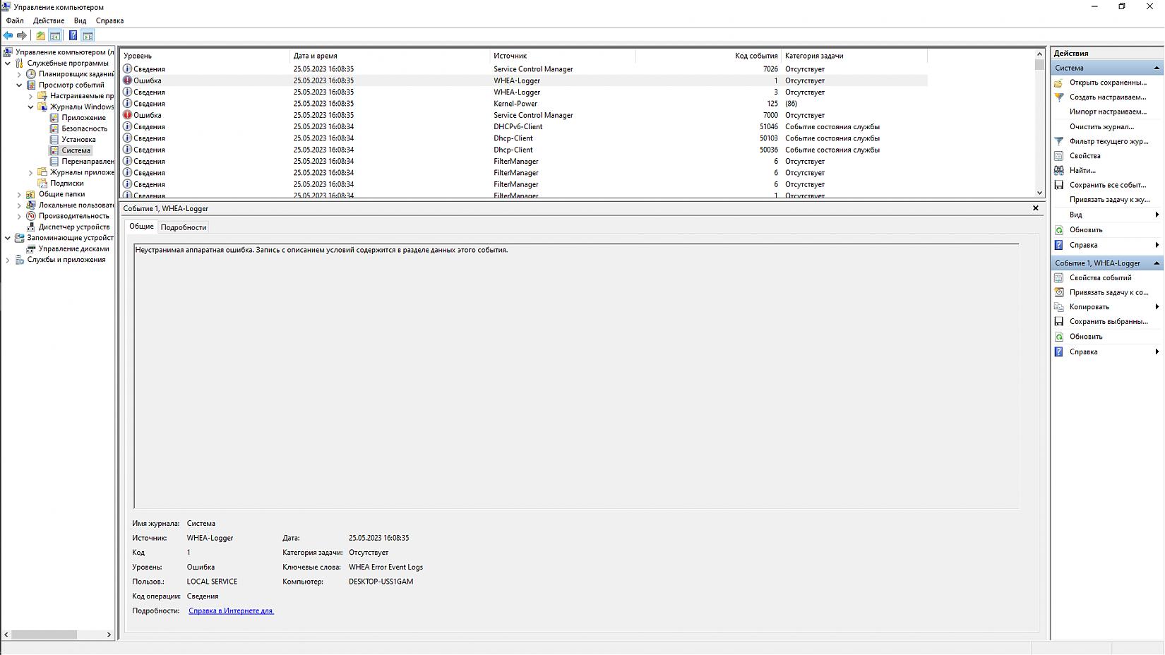 Профиль | Отправить PM | Цитировать NickM, у него на скриншоте WHEA-Logger 1 - "Неустранимая аппаратная ошибка".