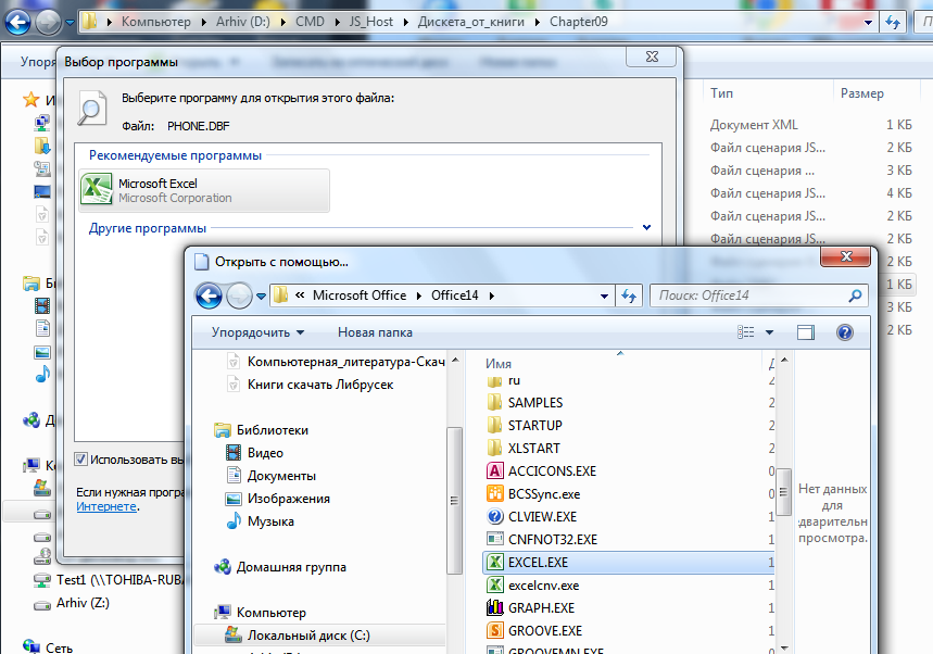 Хочу для файлов с расширением dbf присвоить программу по умолчанию - Excel. Но ее нет в списке "Открыть с помощью" ... не добавляется и через обзор и выбор в папке файла excel.exe