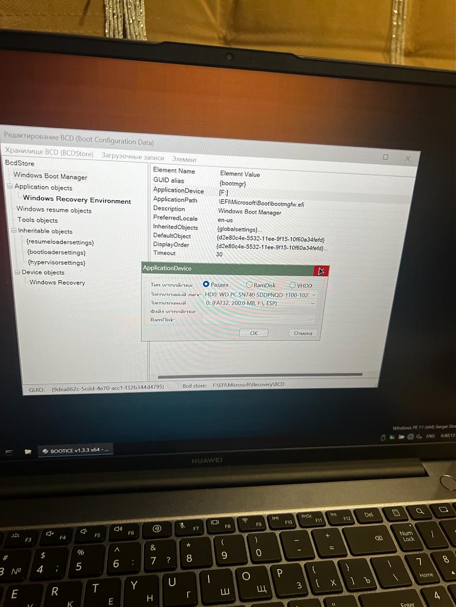 Профиль | Отправить PM | Цитировать У вас же есть LiveCD (StrelecPC, как я понимаю). Назначьте букву ESP-разделу и покажите что на нем есть. BCD-файл с него (если он там будет) можете либо к ответу прикрепить, либо в BootICE открыть и скриншоты сделать с ветки BcdStore (она обычно Windows Boot Manager называется) и все подветки в Application objects.