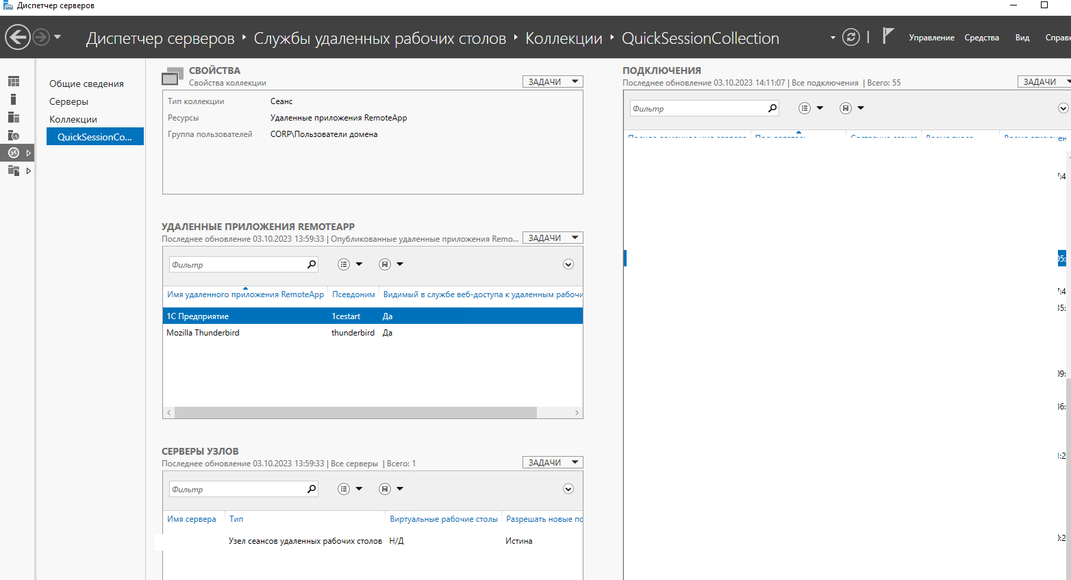 Подскажите запущено опубликовано приложение 1С работает, при попытки добавить новую коллекцию столкнулся с проблемой на шаге "узел сеансов удаленных раб столов" там пусто