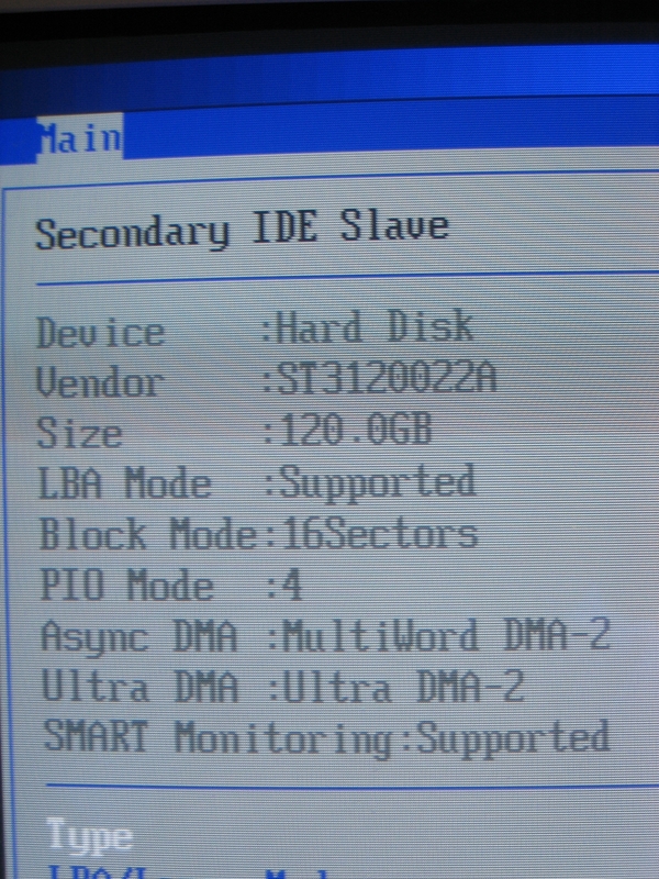 Профиль | Отправить PM | Цитировать Вот информация о жестком из биоса, Далее то как я пытался загрузить комп после нажатия F1 комп встает вылезает черное онко и комп стоит скока ни ждал ни грузится далече мои попытки записать винду привели к тому что мне написалось