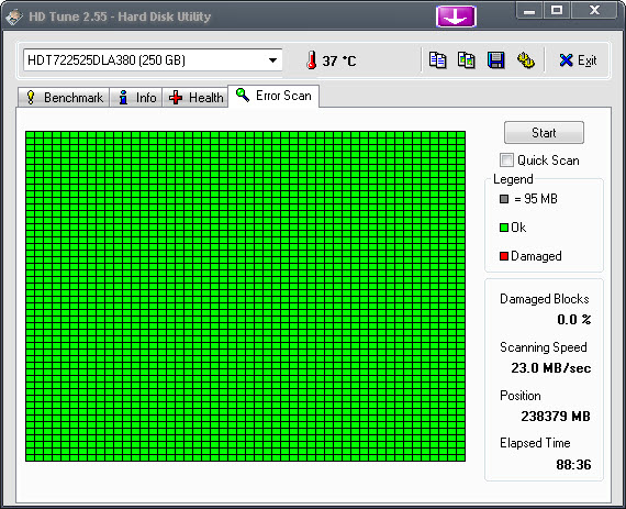 Модель - HDT722525DLA380 Серийный номер - VDB41BT4EVTMEC Емкость - 232.8 ГБ Логические диски - C: D: E: F: Среднее время доступа - 12.9 мс Средняя скорость чтения - 64 Мб/с Текущая температура - 38 °C Наивысшая температура - 38 °C Подключений к питанию - 3063 Отработано часов - ? Состояние - исправен Начало анализа - 30.11.2010 Вот таку картину выдает софтина SMART HDD 0.8.0.6638, правда кнопка диагностика не фурычит, хочет денег, а то что выше он выдал просто после установки. Если этого мало подскажите софт |