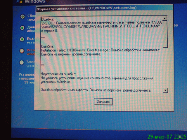 Установка - Ошибка при установке windows xp sp2: ошибка обработки манифеста