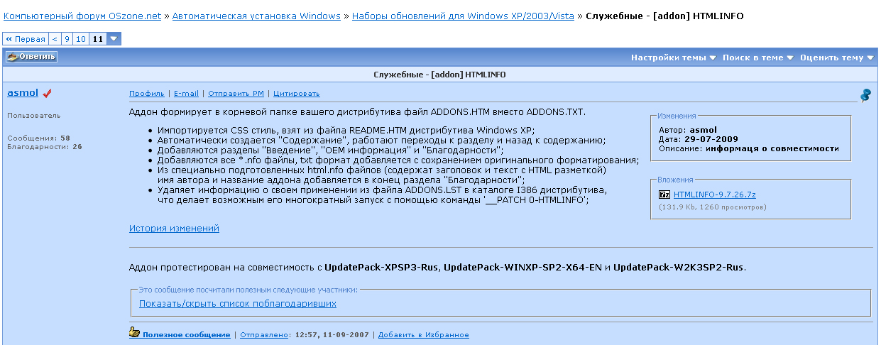 | Компьютерный форум OSzone.net » Автоматическая установка Windows » Наборы обновлений для Windows XP/2003/Windows 7 » Служебные - [addon] HTMLINFO |